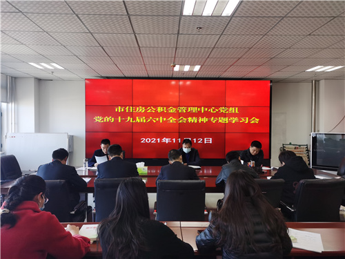 11月12日,市住房公积金管理中心党组召开党的十九届六中全会精神专题学习会,组织党员和干部职工原文学习了《中国共产党第十九届中央委员会第六次全体会议公报》,认真开展了讨论交流。