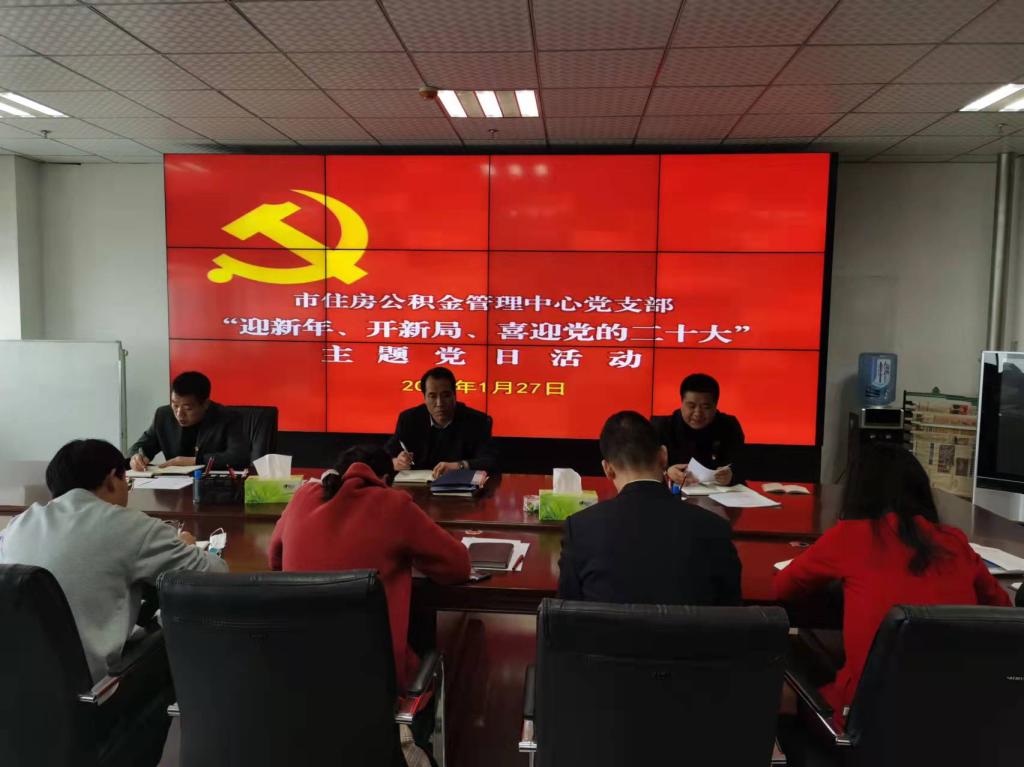 1月27日,市住房公积金管理中心党支部开展了“迎新年、开新局、喜迎党的二十大”主题党日活动,全体党员集体宣誓,重温了入党誓词;集体诵读了《中国共产党章程》第五章;现场交纳了1月份党费。集中学习了国家主席习近平发表的二〇二二年新年贺词、中共中央政治局党史学习教育专题民主生活会精神、习近平总书记在省部级主要领导干部学习贯彻党的十九届六中全会精神专题研讨班开班式上的重要讲话精神、中国共产党第十九届中央纪律检查委员会第六次全体会议公报、中国共产党宁夏回族自治区第十二届纪律检查委员会第六次全体会议公报、自治区十二届人大五次会议、自治区政协十一届五次会议精神、固原市五届人大一次会议和固原市政协五届一次会议精神等内容,各分中心、科室集中清理了环境卫生,健健康康、干干净净迎新春。