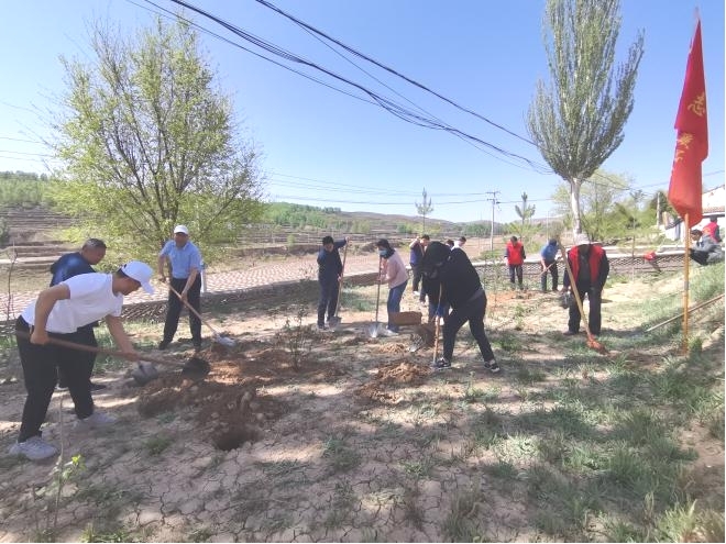 义务植树添新绿,乡村振兴增活力。植树现场,帮扶村村干部细心讲解树苗栽种的基本知识及注意事项,中心干部职工及群众志愿者分组行动,严格按照技术标准要求,挖坑整地、挥锹铲土、种苗浇水,共种植刺玫、榆叶梅、苹果树等树苗170余棵。通过义务植树活动,助推农村人居环境整治提升五年行动有序开展,增强了全体干部职工的爱绿、植绿、护绿、兴绿意识,为倡导绿色发展、建设“美丽新营”、助力乡村振兴贡献住房公积金力量。