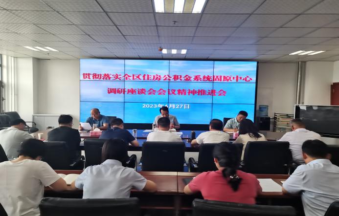 为认真贯彻落实自治区住房和城乡建设厅全区住房公积金系统固原中心调研座谈会会议精神,确保调研座谈会会议精神在固原市住房公积金管理中心落地见效,6月27日下午,市住房公积金管理中心召开贯彻落实全区住房公积金系统固原中心调研座谈会会议精神推进会。