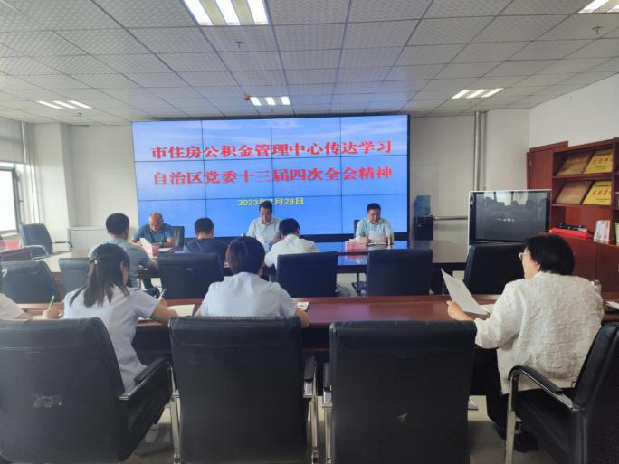 为深入学习贯彻习近平总书记关于安全生产重要论述和重要指示精神精神,认真学习贯彻自治区党委十三届四次全会精神,全面落实党中央关于安全生产工作的决策部署和区、市党委部署要求。7月28日,市住房公积金管理中心召开传达学习自治区党委十三届四次全会精神专题学习会,认真传达学习了自治区党委书记梁言顺在全会上的两次讲话和《中国共产党宁夏回族自治区第十三届委员会第四次全体会议公报》精神。