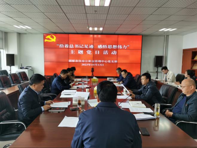 10月13日上午,市住房公积金管理中心党支部召开党员大会,开展主题教育集中学习暨“沿着总书记足迹,感悟思想伟力”主题党日和“讲党课”活动。全体党员集体宣誓,重温了入党誓词;集体诵读了《中国共产党章程》第五章部分内容;现场交纳10月份党费。深入学习习近平总书记关于主题教育系列重要讲话、在全国宣传思想文化工作会议上重要讲话及视察宁夏重要讲话指示批示精神;认真学习了《习近平新时代中国特色社会主义思想专题摘编》之四“坚持以人民为中心”,自治区党委十三届五次全会精神,梁言顺同志在第一次全体会议上的讲话精神。围绕“感悟真挚为民情怀,推动住房公积金事业高质量发展”主题,全体党员结合学习内容和工作实际作交流发言,谈认识体会。市住房公积金管理中心党组书记、党支部书记陈伟同志以“坚定捍卫‘两个确立’,扎实开展主题教育,凝聚奋进新征程力量”为题为全体党员及入党积极分子讲了一堂主题教育党课。
