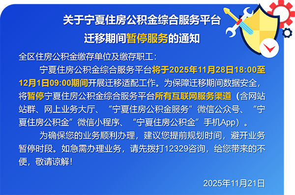 - [银川住房公积金管理中心] 银川住房公积金管理中心关于住房公积金... 2024年11月18日