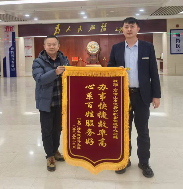 近日,石嘴山市住房公积金管理中心大武口管理部收到了缴存人赠送的“办事快捷效率高 心系百姓服务好”锦旗,对工作人员刘鹏同志表示感谢。