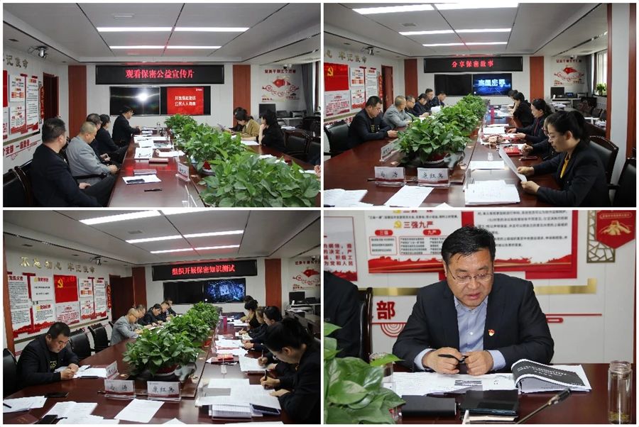活动中,党组书记、党支部书记、主任吴风芳同志领学了《中华人民共和国保守国家秘密法》;党员分享张宝泉、中共一大三易会址等保密故事;组织观看保密科普和公益宣传片《国家密事之窃听》《照片里的秘密》;与所有党员干部职工签订《保密承诺书》,开展保密知识测试;党组成员、副主任杨建军同志作《认清形势把握主动切实加强保密管理工作》的专题党课。