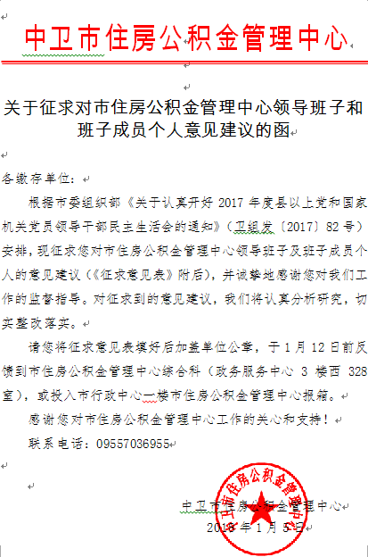 关于征求对市住房公积金管理中心领导班子和班子成员个人意见建议的函