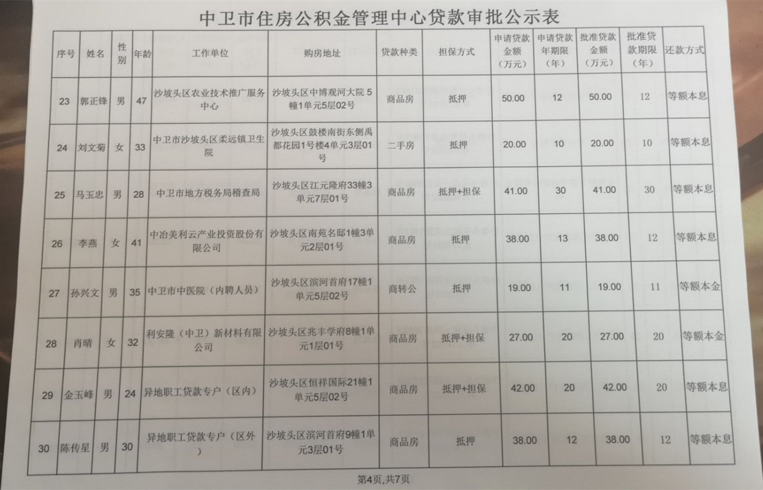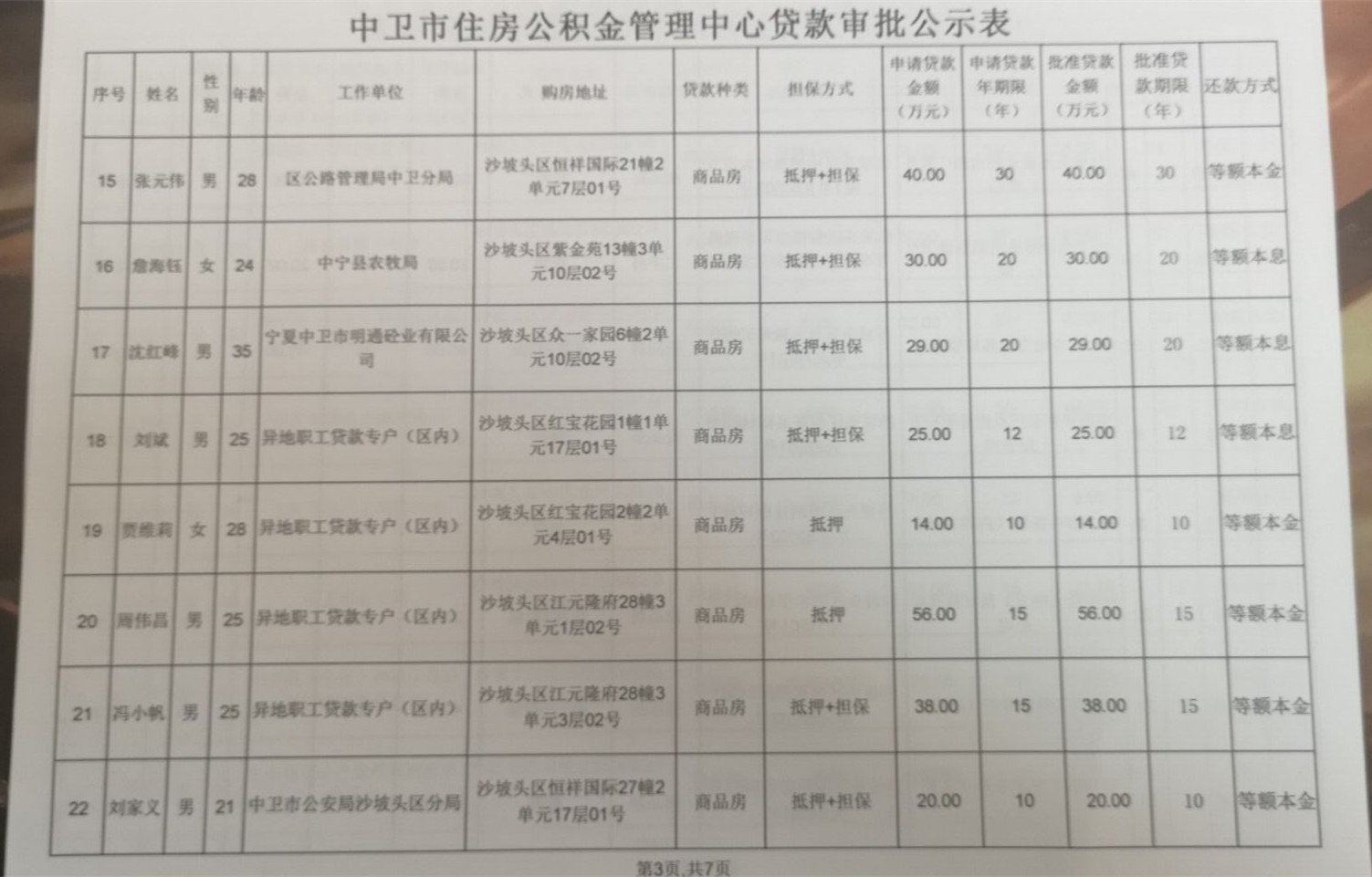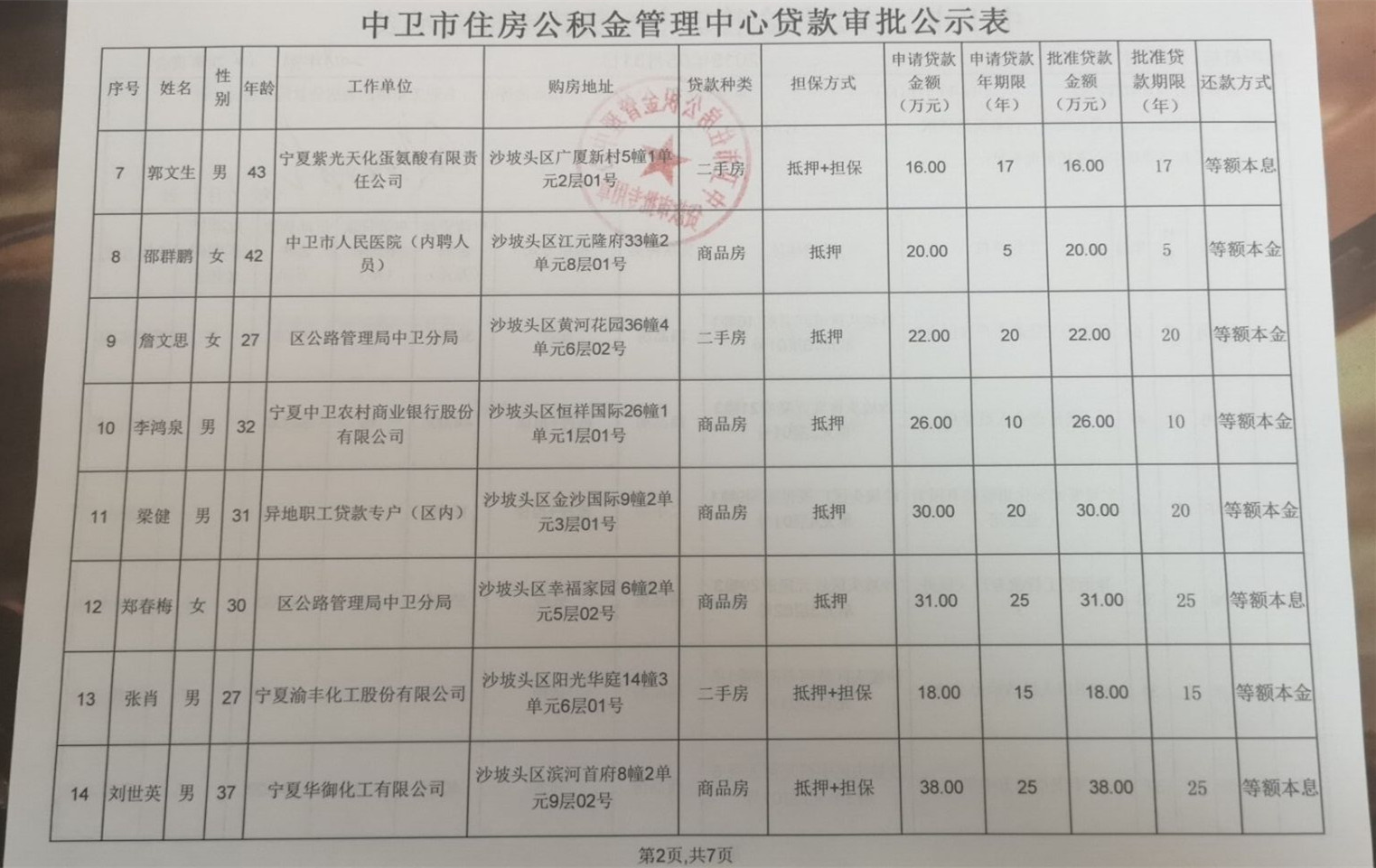 2018年第十四次贷款审批公示表