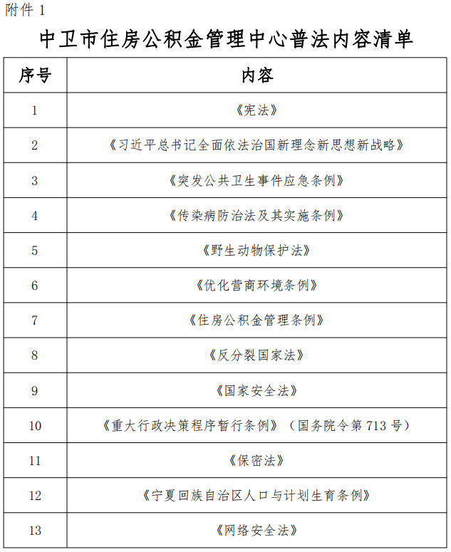 中卫市住房公积金管理中心关于印发普法责任制“四清单一办法”的通知